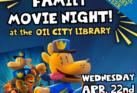 Tickets are available at the Oil City Library for $1 each or $5 for 6. We'll pull the winner after the National Library Week - Family Movie Night "Dog Man" showing on April 22nd, so get your tickets soon!