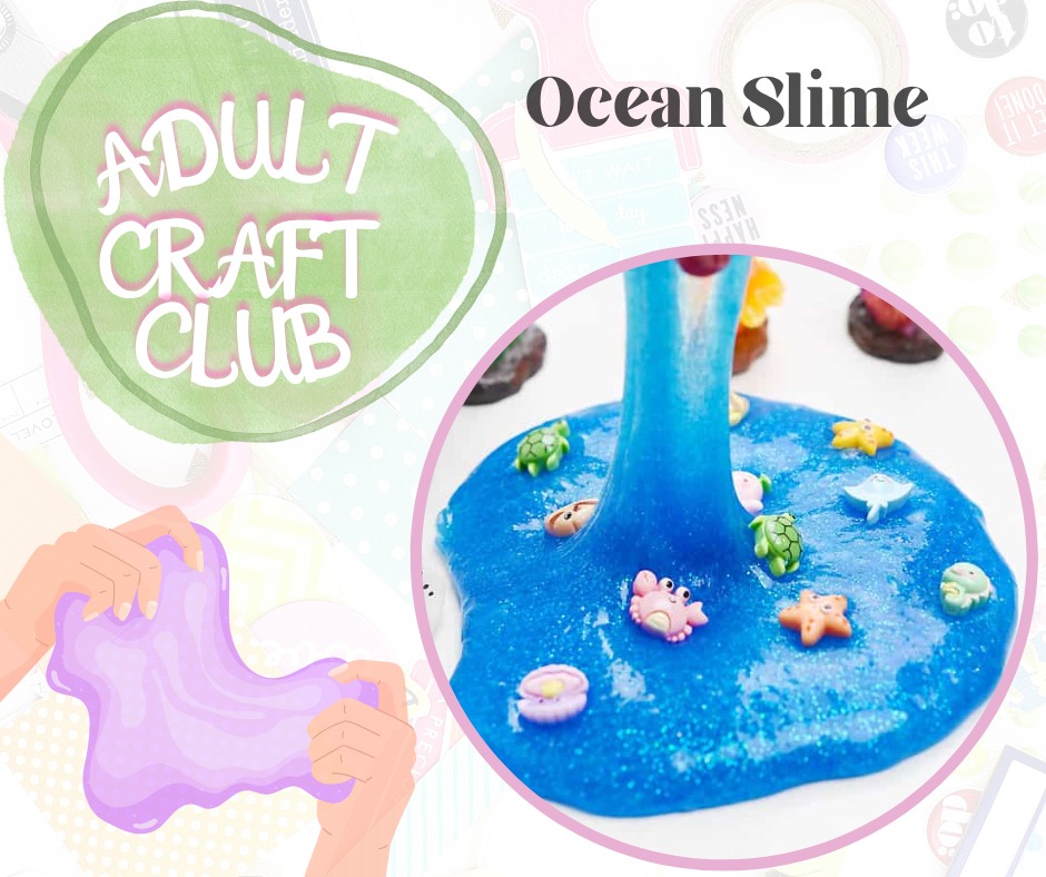 Adult Craft Club is getting messy! Join us for our April sessions to make Ocean Slime. All sessions are free to attend & all materials will be provided.