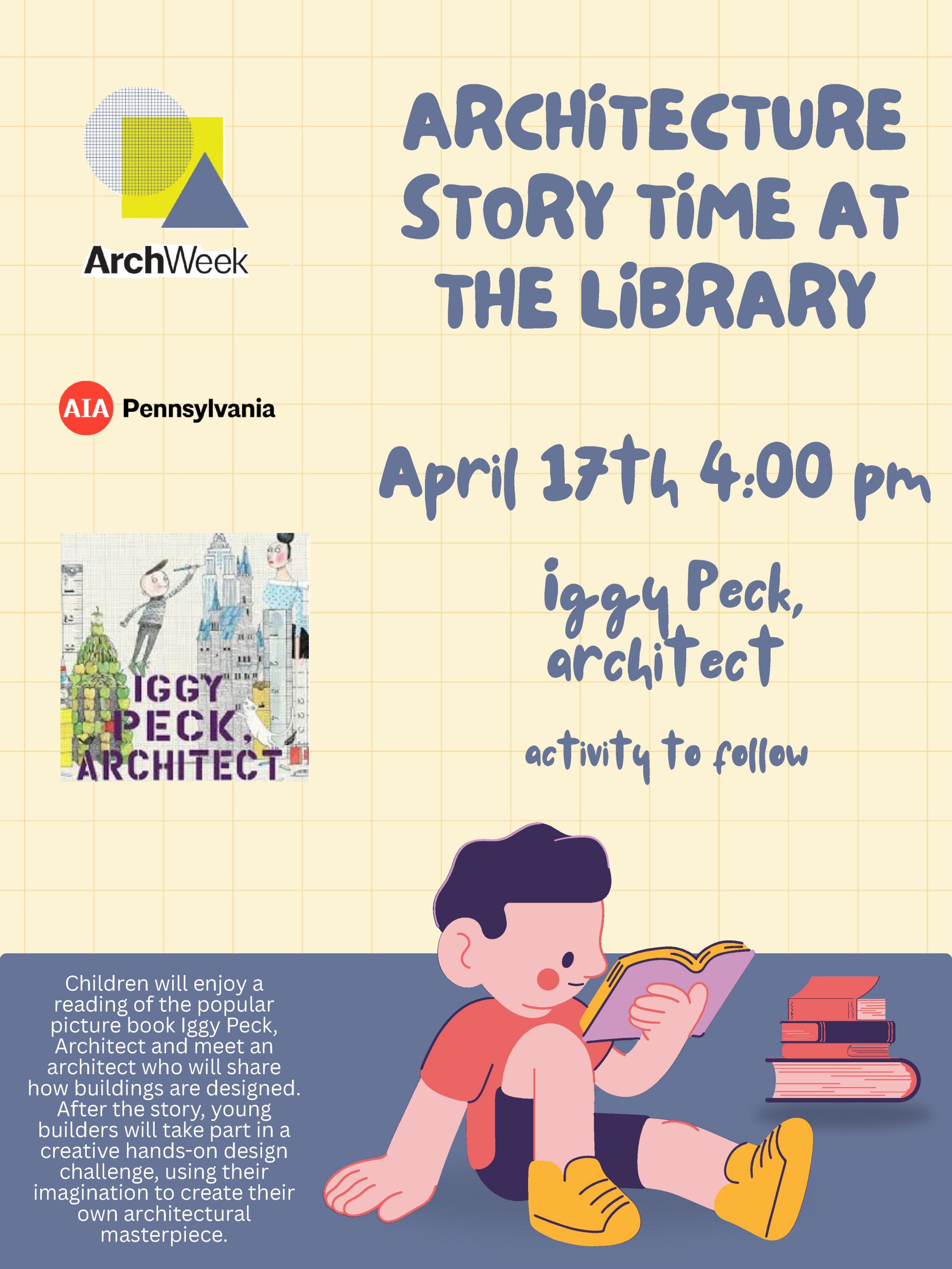 Join us at the Franklin Public Library for an Architecture Storytime on Friday, April 17th, at 4:00 PM! We’ll be reading Iggy Peck, Architect & you’ll learn how buildings are designed from a real architect! We’ll also be doing a hands-on activity to make our own architectural masterpieces! Free to all & registration not required. ![]()