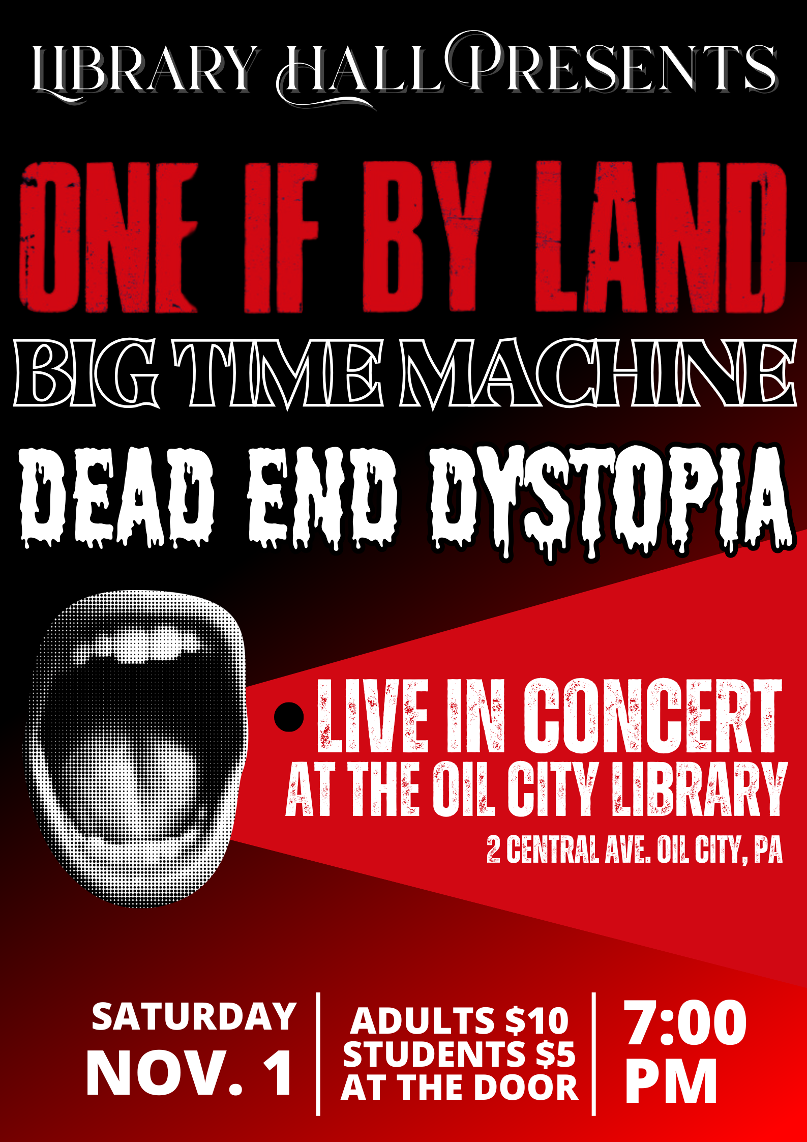 Library Hall Presents: One If By Land / Big Time Machine / Dead End Dystopia